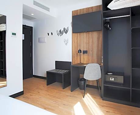 The double room provides air conditioning, soundproof walls, as well as a private bathroom featuring a shower and a hairdryer. The double room features a wardrobe, a safe deposit box, heating, a flat-screen TV, as well as a quiet street view.