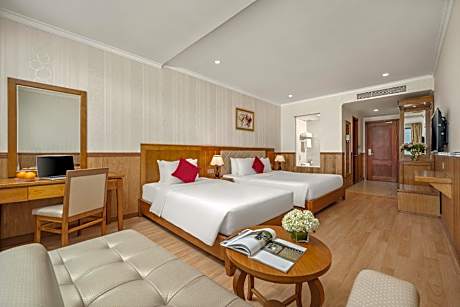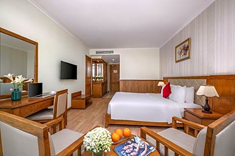 Great care is taken to ensure guests experience comfort through top-notch services and amenities. Remain linked during your visit by utilizing the complimentary internet access available.Prior to your check-in date, you can arrange airport transportation services, guaranteeing a seamless and efficient experience for both arrival and departure.Services offered by taxi and shuttle at the hotel ensure effortless exploration of Da Nang.The hotel offers complimentary parking for guests who arrive with their own mode of transport. Effortlessly plan your daily activities and travel requirements with concierge service, luggage storage and safety deposit boxes provided by the front desk services. For extended visits or whenever required, the dry cleaning service and laundry service ensures your preferred travel garments remain clean and accessible.During leisurely days and evenings, in-room amenities such as room service and daily housekeeping enable you to maximize your stay in the room.The hotel is completely smoke-free. In limited designated zones, smoking is exclusively permitted. Crafted for coziness, every guestroom provides an array of features, guaranteeing a tranquil night's sleep while maintaining the level of comfort.For a more enjoyable stay, select rooms at hotel are equipped with linen service, blackout curtains and air conditioning.At Serene Beach Hotel Danang, a selection of rooms can be found that showcase unique design elements such as a separate living room. For certain chosen rooms, guests can enjoy in-room amusement like television and cable TV as a part of their stay. Rest assured that your hydration needs will be met, as some guestrooms are equipped with a refrigerator, bottled water, instant coffee, instant tea and mini bar.Maintain your cleanliness and comfort using a hair dryer, toiletries and bathrobes available in select guest restrooms. Each morning at Serene Beach Hotel Danang, a scrumptious, homemade breakfast kick-starts the day.Begin your holiday mornings right with your essential cup of coffee, offered daily at the cafe on-site.During your visit, indulge in a range of delightful culinary choices at hotel to enhance your experience.Experience a fantastic evening effortlessly! Relish an entertaining night without venturing beyond the confines of the bar.Indulge in the numerous pursuits available at Serene Beach Hotel Danang.Begin your holiday perfectly by taking a plunge into the swimming pool. At the hotel, enjoy a laid-back beverage experience by the poolside bar, sipping on a soothing cocktail. Eliminate those holiday calories by stopping by hotel and making use of their well-equipped exercise amenities.