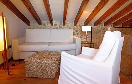 Located in a separate building outside the main house, this spacious, air-conditioned suite has a lounge with a fireplace and a private terrace. Featuring beamed ceilings and soothing cream décor, it offers free Wi-Fi, satellite TV, a mini-bar and a modern bathroom.