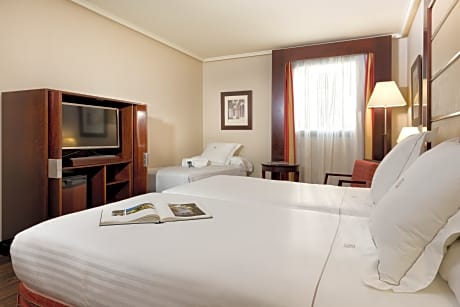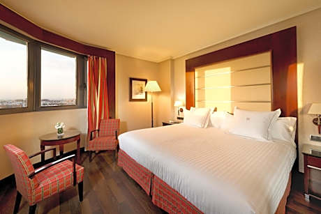 Hotel Sevilla Center is located 15 minutes' walk from Seville’s old town, next to the Buhaira Gardens. It features a seasonal swimming pool on the third floor, a restaurant with panoramic views and free Wi-Fi. By default the first service in Half Board and Full Board is dinner, if you want to change it to lunch you must inform the hotel 24 hours in advance. Rooms at the Sevilla Center are spacious and offer traditional décor. Each has air conditioning, satellite TV and a mini-bar. The Al-Zagal restaurant is located on the 13th floor and serves a range of gourmet Mediterranean cuisine. There is also a daily buffet breakfast. Grilled dishes are on offer on the rooftop terrace during the summer months. The Sevilla features an on-site gym. Guests can also make use of the hotel’s sauna and hot tub. The Center is within walking distance of many of Seville’s tourist attractions. The city’s cathedral is a 20-minute walk away, while the Bull Ring is just over 1.2 miles away. Plaza de España can be reached in 15 minutes, by foot. The hotel is 656 feet from the subway stop, where you can also catch the bus to Sevilla Airport. During Seville's Feria de Abril, the hotel offers a free shuttle service to the venue. For more information on times and reserving a place on the shuttle, please contact the hotel using the details found on the booking confirmation.