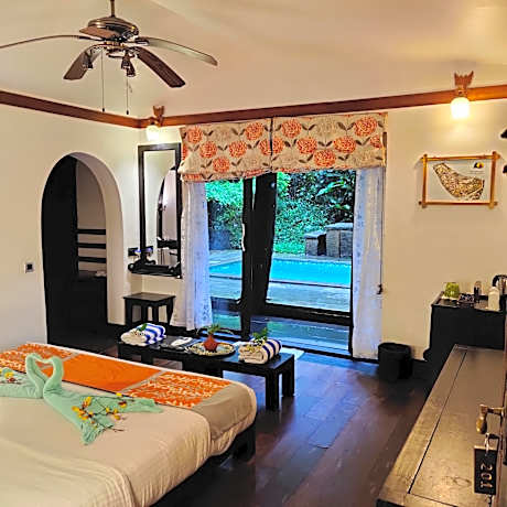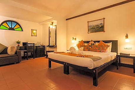 With a mountain stream meandering through the property, Amritara Shalimar Spice Garden Resort & Spa is located amid the cool mountains of Thekkady. Surrounded by green spice plantations, it houses an outdoor pool and 2 dining options. Located at the edge of Periyar Tiger Reserve, the property is 2.5 mi from Kumily Town and about 2.9 mi from the KSRTC Bus Depot. Offering a blend of European and Indian décor, Shalimar’s rooms and cottages feature a terrace with garden views. Tea/coffee making facilities and a mini-bar are included. Private bathrooms come with shower facilities and a hairdryer. Featuring local antique wooden furniture, Falling Leaves serves a variety of Indian and European dishes. In-room dining is possible. The Red Lounge features drinks in a relaxing environment lit and warmed by a crackling fireplace. Guests can go for an Ayurvedic massage, or head to the library for a quiet read. The tour desk can arrange for activities such as trekking, rafting or tribal village visits. The 24-hour front desk can assist with laundry and currency exchange services.