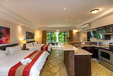 Guests can start their day with a complimentary breakfast at Bella Vista Restaurant, which serves regional and international cuisine throughout the day. The Living Bar and Lounge provides the perfect setting for relaxing with a drink. The hotel is close to popular activities like hiking, cycling, and fishing, and offers easy access to the vibrant village of Quepos and the renowned Manuel Antonio National Park.