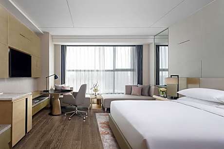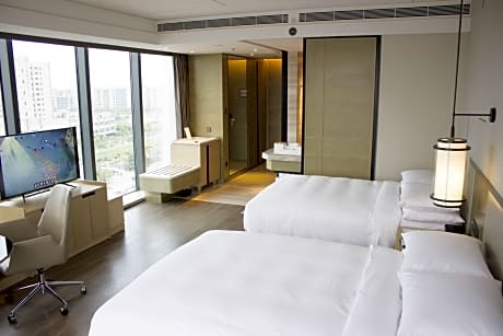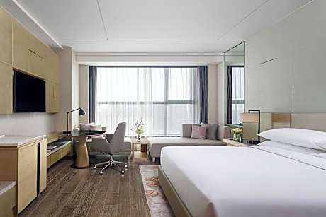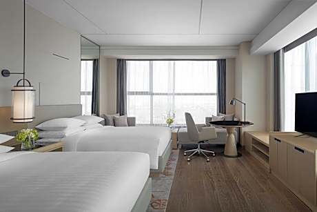 Experience an abundance of unparalleled facilities and features at Shanghai Marriott Hotel Kangqiao.Car hire offerings at the hotel enhance the ease of discovering Shanghai.Guests can avail parking facilities at the hotel. During your stay at this fantastic hotel, the attentive front desk personnel can provide you with a range of amenities such as concierge service and safety deposit boxes.For extended visits or whenever required, the laundromat ensures your preferred travel garments remain fresh and accessible.Craving relaxation? Make the most of your stay at the Shanghai Marriott Hotel Kangqiao with convenient amenities like room service and daily housekeeping at your disposal. At Shanghai Marriott Hotel Kangqiao, every guestroom is provided with convenient amenities and fittings to ensure a comfortable stay. Enhance your experience at hotel with the knowledge that certain rooms are equipped with linen service, blackout curtains and air conditioning for your convenience.Certain rooms boast in-room amusement features such as television and cable TV, offering guests an enjoyable stay. In select rooms at the hotel, mini bar is available for those moments when it seems necessary. It is worth noting that certain guest bathrooms feature a hair dryer and bathrobes for your convenience. Be sure to stop by the elegant executive lounge where you can experience the lavish amenities and ambiance. Begin your day with a scrumptious on-site breakfast available each morning at Shanghai Marriott Hotel Kangqiao. Enjoy an entertaining evening with your fellow travelers at the hotel's bar.At the hotel, discerning guests can also enjoy on-site culinary facilities like BBQ facilities tailored to their preferences.