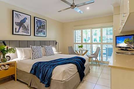Just 1312 feet from Four Mile Beach, Shantara Resort Port Douglas offers boutique-style accommodations with a private balcony. This adults only retreat features 2 swimming pools, a fitness center and a day spa offering personalized treatments. Free WiFi is included. Each apartment features a lounge/dining area with cable TV and DVD player, laundry facilities, and a bathroom with spa bath and separate shower. Studio apartments include kitchenettes. Shantara Apartments are just a short 10-minute walk from the restaurants and cafes of Macrossan Street. Internet access is available. You can enjoy a meal in the covered BBQ area, or swim in the pool. The property also offers a tour desk and bicycle rental.
