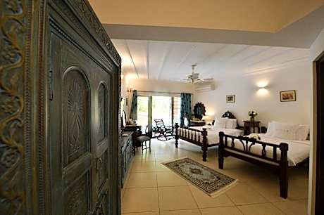 Experience an abundance of unparalleled facilities and features at Storii by ITC Hotels Shanti Morada Saligao, Goa.Maintain seamless communication using the complimentary Wi-Fi at resort villa.Effortlessly arrange transportation to and from the airport using the resort villa's airport transfer services.Discovering Goa becomes even more accessible through the taxi, car hire and shuttle amenities provided at the resort villa. For visitors traveling by automobile, complimentary parking is available. During your stay at this fantastic resort villa, the attentive front desk personnel can provide you with a range of amenities such as concierge service, express check-in or check-out, luggage storage and safety deposit boxes.In search of city's top entertainment, seek assistance at the resort villa's ticket service and tours for reservations. During chilly days and evenings, the resort villa provides an in-house fireplace to ensure your warmth.At the resort villa, utilize the on-site dry cleaning service and laundry service to maintain your beloved travel attire fresh, allowing you to bring fewer clothes.Craving relaxation? Make the most of your stay at the Storii by ITC Hotels Shanti Morada Saligao, Goa with convenient amenities like 24-hour room service, room service and daily housekeeping at your disposal. Kindly note that smoking is prohibited in the resort villa to ensure fresher air for all visitors.For visitors wishing to smoke, designated smoking zones can be found.At Storii by ITC Hotels Shanti Morada Saligao, Goa, every guestroom is provided with convenient amenities and fittings to ensure a comfortable stay.Enhance your experience at resort villa with the knowledge that certain rooms are equipped with linen service, blackout curtains and air conditioning for your convenience.A few accommodations within Storii by ITC Hotels Shanti Morada Saligao, Goa offer unique design elements such as a balcony or terrace. Certain rooms offer in-room amusement features such as the cable TV for your enjoyment. In select rooms within the resort villa, a coffee or tea maker, bottled water and mini bar is available to cater to your requirements when desired. It is worth noting that certain guest bathrooms feature a hair dryer, toiletries and bathrobes for your convenience. Be sure to stop by the elegant executive lounge where you can experience the lavish amenities and ambiance. Begin your day with a scrumptious on-site breakfast available each morning at Storii by ITC Hotels Shanti Morada Saligao, Goa. Begin your day feeling refreshed and invigorated as you enjoy a delightful cup of quality coffee available at the cafe situated within the resort villa.At the resort villa, an assortment of easily accessible and delicious meal choices are available to satisfy your appetite whenever it strikes. At Storii by ITC Hotels Shanti Morada Saligao, Goa, they are committed to catering to your unique requirements. They offer a variety of meal choices, encompassing halal alternatives for those with special dietary preferences. Create unforgettable moments with your fellow voyagers just steps away, at resort villa's bar, nightclub and casino, for a delightful evening together.At the resort villa, discerning guests can also enjoy on-site culinary facilities like BBQ facilities tailored to their preferences.During your stay at resort villa, an array of engaging activities and amenities guarantees a delightful experience.Conclude your holiday perfectly with a visit to massage, hot tub, steam room, spa and sauna on your final days.Be sure to drop by the pool at resort villa at least once during your stay. At Storii by ITC Hotels Shanti Morada Saligao, Goa, utmost care is taken to ensure guests' comfort. Relish your preferred beverage in your swimwear by the resort villa's poolside bar.