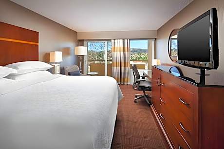 Just off Highway 101, this hotel is within a mile of Lake Lindero. It offers an outdoor pool, a free local shuttle and on-site dining. Rooms feature a flat-screen TV and an iPod docking station. A fridge and a coffee maker are provided in all spacious rooms at Sheraton Agoura Hills Hotel. Rooms are traditionally styled and feature warm colors. A seating area with a work desk is provided and Wi-Fi access is available. Dining options at the Agoura Hills Hotel Sheraton include the H2O Sea Grill, which serves California cuisine. Guests can also enjoy a cocktail in the Liquid Lounge. The hotel offers a gym for guest recreation. A business center is on site for guest use, and a hotel gift shop is available. Westlake Village Golf Course is 6 minutes' drive away and shopping at The Promenade at Westlake is 8 minutes' drive from the hotel. Malibu is 17 miles away.