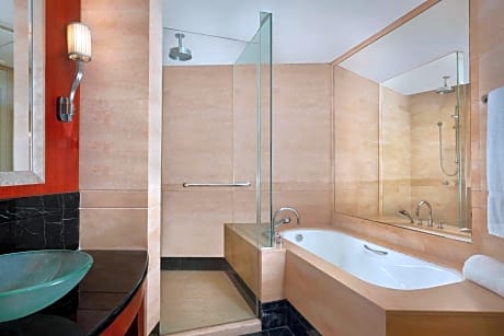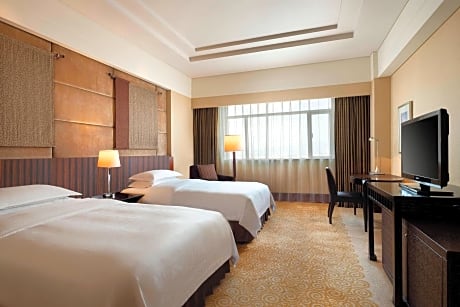 Great care is taken to ensure guests experience comfort through top-notch services and amenities.Discovering Dongguan becomes even more accessible, thanks to the car hire amenities provided at the hotel. Parking is accessible, supplied by the hotel for guests who arrive by car. Effortlessly plan your daily activities and travel requirements with concierge service and safety deposit boxes provided by the front desk services.For extended visits or whenever required, the laundromat and dry cleaning service ensures your preferred travel garments remain clean and accessible.During leisurely days and evenings, in-room amenities such as room service and daily housekeeping enable you to maximize your stay in the room. For minor or impromptu requirements, the convenience stores can promptly cater to them without the necessity of stepping out from the hotel. Crafted for coziness, every guestroom provides an array of features, guaranteeing a tranquil night's sleep while maintaining the level of comfort. For certain chosen rooms, guests can enjoy in-room amusement like television and cable TV as a part of their stay.Rest assured that your hydration needs will be met, as some guestrooms are equipped with instant tea and mini bar.Maintain your cleanliness and comfort using a hair dryer and bathrobes available in select guest restrooms. Each morning at Sheraton Dongguan Hotel, a scrumptious, homemade breakfast kick-starts the day. Begin your holiday mornings right with your essential cup of coffee, offered daily at the cafe on-site. Experience a fantastic evening effortlessly! Relish an entertaining night without venturing beyond the confines of the bar.