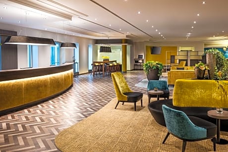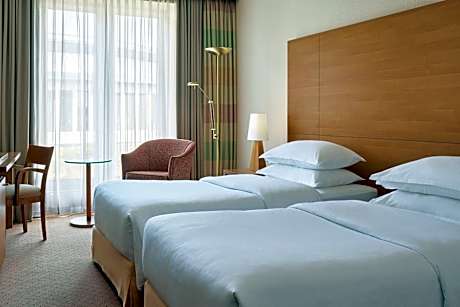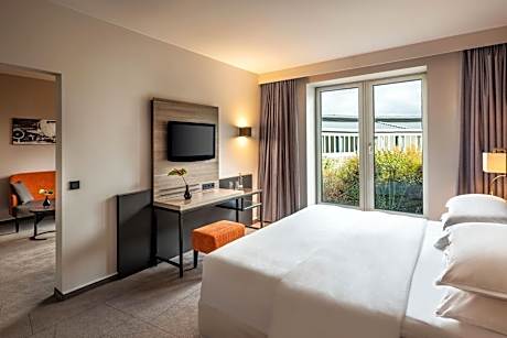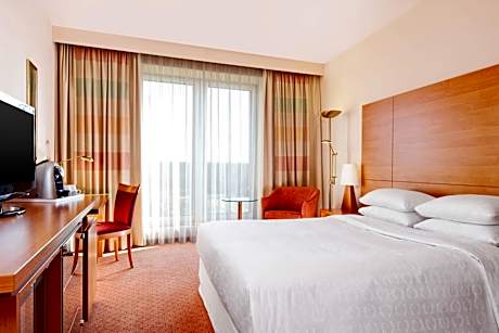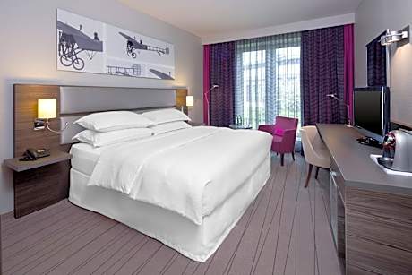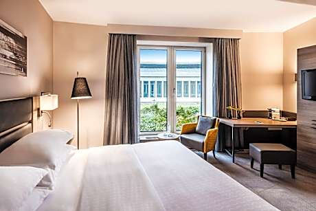 This elegant hotel is located directly above Düsseldorf Airport's parking deck P3, and is just 1.9 mi from Messe Düsseldorf Convention Center. It offers free WiFi in the public working area, a restaurant, and a 24-hour fitness room. The Sheraton Düsseldorf Airport Hotel is designed in a penthouse style. It has soundproofed rooms with a view of the Sheraton's green rooftop terrace. In addition to 24-hour room service, an early breakfast is available daily from 04:00 until 05:30 in the morning. The Sheraton Düsseldorf Airport's business lounges provide free WiFi and free use of computer terminals, guests can also enjoy a summer terrace. The Flughafen Fernbahnhof train station is just 0.6 mile away from the Sheraton Düsseldorf. New breakfast times: Mon - Fri 5.30 am until 10.30 am / Sat & Sun 5.30 am until 11.00 am.