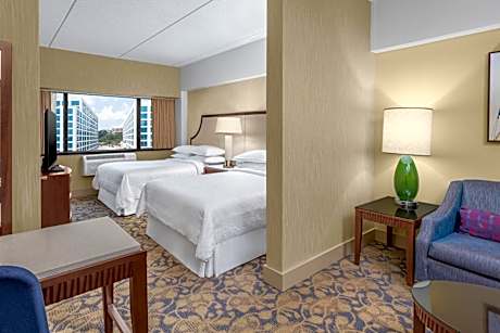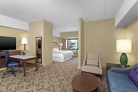 This New Jersey hotel with views of the Manhattan skyline is adjacent to the New York Waterway Ferry, which offers 6-minute rides into New York City. The hotel offers spacious suites. Sheraton Lincoln Harbor Hotel suites include a separate living area with sofa. The suites also feature 2 flat-screen TVs and a large work desk. The Lincoln Harbor Sheraton guests can dine at Jack Austin's Eat And Drink, which offers a menu focused on organic ingredients from local farms with free-range environments. The restaurant also provides a waterfront view setting to its guests. The Sheraton Hotel Lincoln Harbor is 1640 feet from the Lincoln Harbor Bus Stop. Times Square and Radio City Music Hall are within 3.7 mi of the hotel.