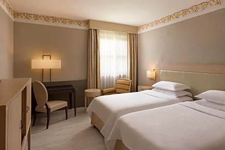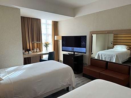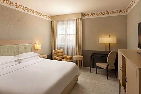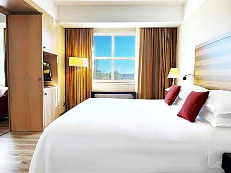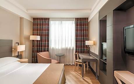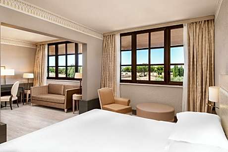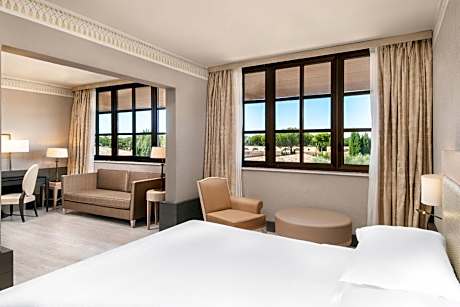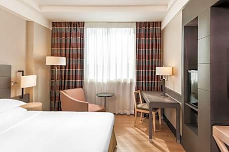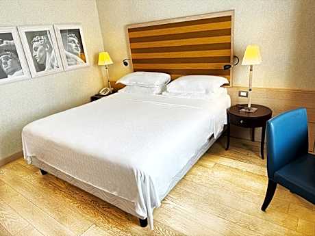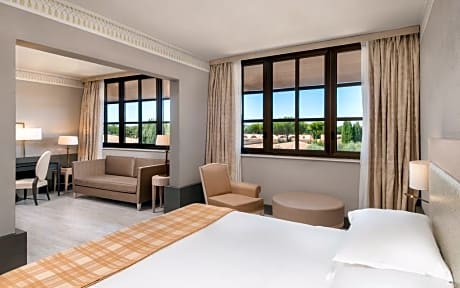 Surrounded by landscaped gardens, Sheraton Rome Parco de Medici features a 27-hole golf course and an outdoor pool. It is 6.2 mi from Fiumicino Airport and 5 minutes' drive from Rome's A90 ring road. Rooms come with modern or classic furnishings, some of them handcrafted. All air conditioned, they offer satellite TV and views of the gardens, the pool or the golf course. Free WiFi is available throughout the entire property. Sheraton Rome Parco de Medici consists of a number of buildings across the green grounds. There are 8 individually decorated restaurants and bars serving international cuisine and cocktails. Wi-Fi is free in the lobby and shared areas. The hotel is located just outside Rome’s E.U.R. district,8.1 mi from the historic center. Friendly staff at the 24-hour reception can provide tourist information, and organize shuttle services to the airport and the city center.