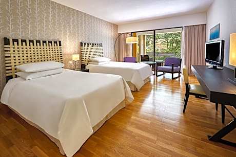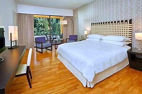 Overlooking Ixia Beach, the 5-star Sheraton Rhodes is located 2.5 mi from Rhodes’s Medieval Town. It features 4 indoor and outdoor pools and a fully-equipped fitness center. Four gourmet restaurants, a lounge bar and a pool bar are also available. All air-conditioned rooms at Resort Sheraton Rhodes offer a furnished balcony with views to the Aegean Sea or to the mountains and gardens. Each unit is equipped with a satellite LCD TV and a fridge. Marble bathrooms are stocked with bathrobes and luxury amenities. Buffet breakfast and dinner is served at the relaxing setting of Castellania Restaurant. Mediterraneo Restaurant serves dishes close to the pool, while there is also an Italian-inspired restaurant. Overlooking the Aegean Sea, Thèa Restaurant offers Greek cuisine with local ingredients. Guests can relax at the poolside bar enjoying cocktails and refreshing soft drinks. Sports facilities include squash, tennis and basketball courts. The children’s club offers organized activities with an entertainment team. Rhodes Town, a UNESCO World Heritage Site, offers many entertainment options. Rhodes Diagoras International Airport is at 9.3 mi. Free private parking is available on site.