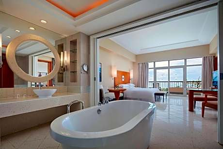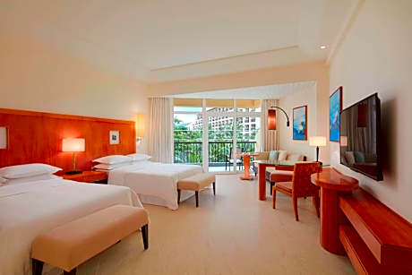 Experience an abundance of unparalleled facilities and features at Sheraton Sanya Resort. Car hire offerings at the hotel enhance the ease of discovering Sanya.Guests can avail parking facilities at the hotel.Reception assistance is offered at the hotel featuring concierge service.Craving relaxation? Make the most of your stay at the Sheraton Sanya Resort with convenient amenities like 24-hour room service, room service and daily housekeeping at your disposal. For all your minor, last-minute requirements, the convenience stores can promptly cater to them, eliminating the need to venture out. At Sheraton Sanya Resort, every guestroom is provided with convenient amenities and fittings to ensure a comfortable stay.A few accommodations within Sheraton Sanya Resort offer unique design elements such as a balcony or terrace. Certain rooms offer in-room amusement features such as the cable TV for your enjoyment. In select rooms within the hotel, instant tea and mini bar is available to cater to your requirements when desired.It is worth noting that certain guest bathrooms feature a hair dryer and bathrobes for your convenience. Begin your day with a scrumptious on-site breakfast available each morning at Sheraton Sanya Resort. Begin your day feeling refreshed and invigorated as you enjoy a delightful cup of quality coffee available at the cafe situated within the hotel. Enjoy an entertaining evening with your fellow travelers at the hotel's bar. At Sheraton Sanya Resort, visitors have the option to receive groceries directly in their accommodation, ensuring outstanding comfort and simplicity when it comes to meals.