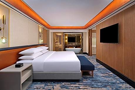 Sheraton Surabaya Hotel & Towers offers top-notch services and amenities, ensuring guests experience utmost comfort. Experience the wonders of Surabaya with ease by utilizing the services provided at car hire. Visitors can take advantage of the accessible parking options directly at the hotel. Reception services such as concierge service and safety deposit boxes are available to accommodate your requirements. Traveling with minimal luggage is achievable at Sheraton Surabaya Hotel & Towers due to the hotel's dry cleaning service ensuring your garments stay fresh.Room amenities like room service and daily housekeeping contribute to making a perfect selection for your stay.Each accommodation at Sheraton Surabaya Hotel & Towers is thoughtfully created and adorned to provide visitors with a comfortable, home-like atmosphere.In certain rooms, the hotel offers linen service, blackout curtains and air conditioning for guest convenience and satisfaction.At Sheraton Surabaya Hotel & Towers, the uniquely tailored rooms provide a configuration choice resembling a separate living room.In select rooms, guests at the hotel can enjoy top-notch in-room entertainment with daily newspaper, television and cable TV available for their convenience.Rest assured, in a few chosen rooms, you will find the convenience of a refrigerator, bottled water, a coffee or tea maker, instant coffee, instant tea and mini bar at your disposal. Sheraton Surabaya Hotel & Towers offers a hair dryer, toiletries and bathrobes in the restrooms of specific accommodations. Embark on your holiday experience in the most ideal manner. Commence each morning of your visit with an on-site breakfast. Experience the delight of a fresh morning by savoring excellent coffee at the cafe situated within hotel.No matter your specific dietary needs, rest assured that Sheraton Surabaya Hotel & Towers provides an array of halal choices to ensure your dining experience is nothing short of delightful.Experience an unforgettable evening with your fellow travelers just a short distance away, at hotel's bar.