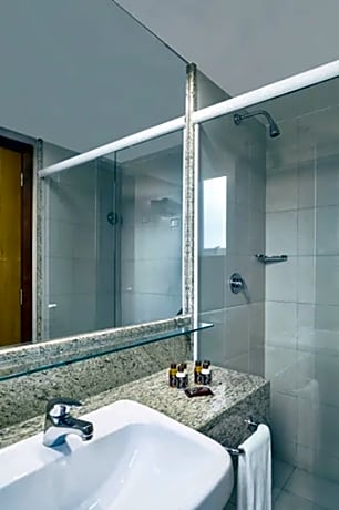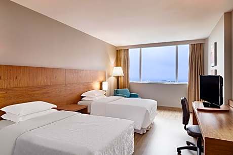Sheraton Vitoria is a 4-star hotel located on Espirito Santo’s Canto Beach. It offers bright rooms that overlook the Atlantic Ocean, free WiFi access in hotel public areas. Parking is available for a fee. Rooms at Sheraton Vitoria Hotel are equipped with a plasma TV with cable channels. Their bathroom are equipped with a hairdryer and toiletries. Some accommodations have a DVD player. International cuisine is served at the Sheraton Vitoria's restaurant. Room service is available 24 hours and guests can order evening cocktails at the lobby bar. The well-equipped fitness center overlooks the city. Guests also have access to an outdoor swimming pool, fitness center and sauna. Vitoria Shopping Center is just 1.2 mi from the hotel. Praia da Costa Beach can be reached with a 15-minutes drive and Eurico Sales Airport and Vitória Convention Center are within 10-minutes drive.