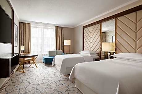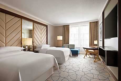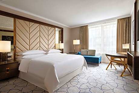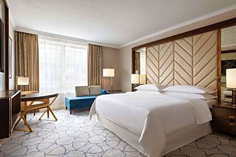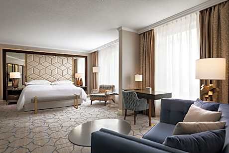 The 5-star Sheraton Grand Warsaw with its newly renovated lobby and on-site restaurants is a great place for both business and leisure. The new unique design of the hotel attracts guests from all around the world. The hotel is located in the center of Warsaw in Three Crosses Square, just 5 minutes’ walking distance from the famous Nowy Świat Street and a 10-minute walk from Łazienki Royal Park. The hotel offers thoughtfully designed, air-conditioned rooms which come with a mini-bar and tea/coffee-making facilities. Each room has a flat-screen TV with multilingual cable and satellite channels, as well as a private bathroom. Rooms also come with ironing facilities, a make-up mirror and mineral water. The higher standard rooms occupying the hotel's top floor offer complimentary breakfast, snacks and drinks, Internet access, and a private reception and Club Lounge access. The hotel offers free Internet access in the lobby, restaurants and bars. The hotel houses two new restaurants: inAzia, serving Asian cuisine, and Cucina Mia restaurant, specializing in Italian dishes. The Palace of Culture and Science is just 0.8 mi from the hotel, and guests can get to the Royal Castle and the historic Old Town in just 5 minutes by bus. The neighborhood features an elegant shopping center with numerous, elegant boutiques and lively bars and cafés. The National Stadium, which is just on the other side of the river, and the Copernicus Science Center are both less than 1.9 mi away from the hotel.