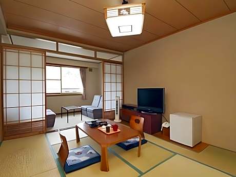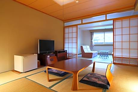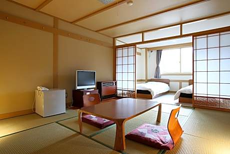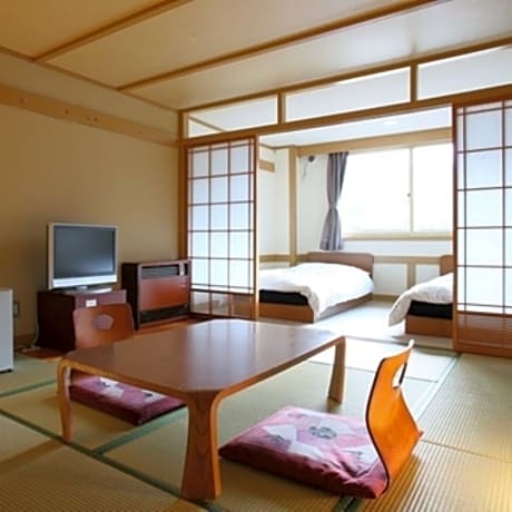 This room features Western beds and a tatami (woven-straw) seating area, where some guests can sleep on Japanese futon bedding. A flat-screen TV, a fridge and a private toilet are included, and Japanese Yukata robes and toothbrush sets are provided for all guests. An private bathroom is available.