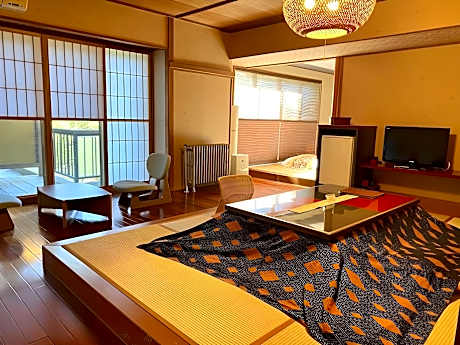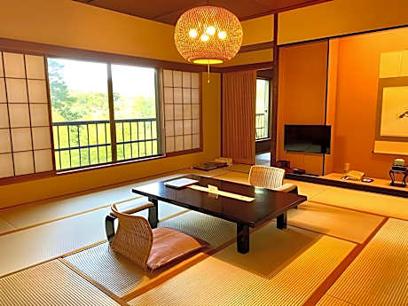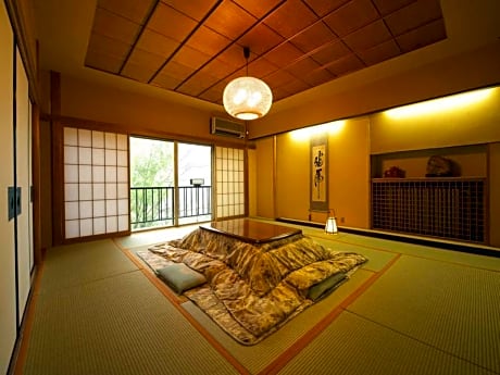 Providing free toiletries, this family room includes a shared bathroom with a bidet and a hairdryer. The spacious air-conditioned family room provides a flat-screen TV, tatami, a wardrobe, a safe deposit box as well as mountain views. The unit offers 8 futons.
