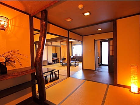 Great care is taken to ensure guests experience comfort through top-notch services and amenities. Remain linked during your visit by utilizing the complimentary internet access available.The ryokan offers complimentary parking for guests who arrive with their own mode of transport.Effortlessly plan your daily activities and travel requirements with luggage storage and safety deposit boxes provided by the front desk services.Need some relaxation? Your room features daily housekeeping to make your stay even more comfortable and enjoyable. The ryokan is completely smoke-free.Crafted for coziness, every guestroom provides an array of features, guaranteeing a tranquil night's sleep while maintaining the level of comfort.For a more enjoyable stay, select rooms at ryokan are equipped with linen service, blackout curtains and air conditioning.At Shin Kaikatei Izumi Hot Spring Ryokan, guests can choose from a variety of room configurations, some of which feature separate living room and balcony or terrace.Expand your in-room entertainment choices with various amenities, such as television offered in certain accommodations. Rest assured that your hydration needs will be met, as some guestrooms are equipped with a refrigerator, instant tea and mini bar. Maintain your cleanliness and comfort using a hair dryer, toiletries and bathrobes available in select guest restrooms. Snack vending machines operate around the clock, providing you with easy access to treats regardless of the hour. Indulge in the numerous pursuits available at Shin Kaikatei Izumi Hot Spring Ryokan. Treat and spoil yourself by stopping at massage and spa for a memorable experience.