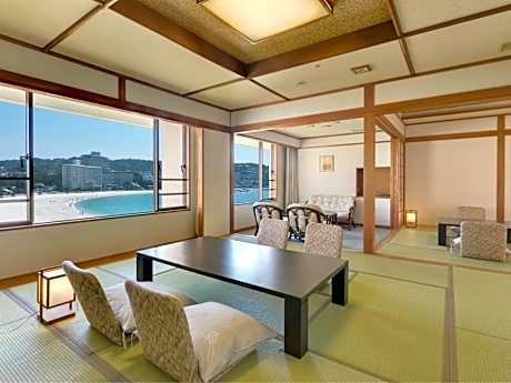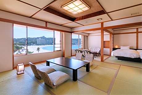 Shiraraso Grand Hotel offers top-notch services and amenities, ensuring guests experience utmost comfort. Share your photos and respond to emails at your convenience, thanks to the free Wi-Fi internet access offered by hotel. Taxi offerings at the hotel enhance the ease of discovering Shirahama.Visitors can take advantage of complimentary parking directly at the hotel.Reception services such as luggage storage and safety deposit boxes are available to accommodate your requirements.The hotel maintains a completely smoke-free zone, providing a breathable atmosphere. Smoking is limited to specified smoking zones. Each accommodation at Shiraraso Grand Hotel is thoughtfully created and adorned to provide visitors with a comfortable, home-like atmosphere.In certain rooms, the hotel offers linen service and air conditioning for guest convenience and satisfaction. In select rooms, guests can enjoy a touch of amusement with the availability of television for their entertainment.Rest assured, in a few chosen rooms, you will find the convenience of a refrigerator, bottled water, a coffee or tea maker, instant coffee and instant tea at your disposal. Shiraraso Grand Hotel offers a hair dryer, toiletries and bathrobes in the restrooms of specific accommodations. Experience the delight of a fresh morning by savoring excellent coffee at the cafe situated within hotel. Experience an unforgettable evening with your fellow travelers just a short distance away, at hotel's bar.Throughout the day and evening, grab a bite to eat from hotel's self-service vending machines whenever you please. Shiraraso Grand Hotel provides a superb assortment of leisure amenities for guests to enjoy. Make certain to allocate time for discovering the shoreline, easily reachable right from the hotel.Unwind after your day by exploring the massage and find warmth and relaxation.Each day at hotel, immerse yourself in the invigorating waters of the pool, perfect for a rejuvenating plunge or a series of revitalizing laps.