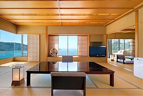 The family room includes a private bathroom, well-fitted with a bath, a shower, a bidet, a hairdryer and slippers. The spacious air-conditioned family room provides a flat-screen TV, tatami, a tea and coffee maker, a seating area as well as sea views. The unit offers 8 futons.