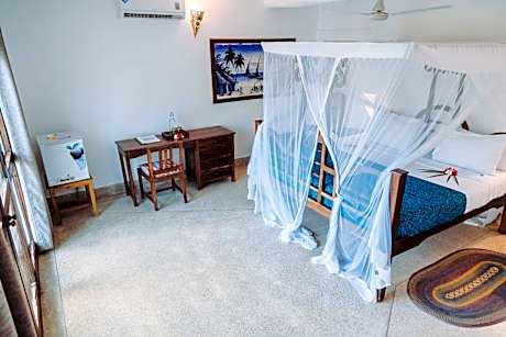Shooting Star Boutique Hotel is located at the beach in Kiwengwa. Surrounded by tropical gardens with stunning views across the Indian Ocean, the lodge features an outdoor pool and spa. The rooms at the Shooting Star Boutique Hotel have air-conditioning, a patio and a private bathroom with bathrobes and free toiletries. The lodge has a restaurant and beach bar. An array of activities can be enjoyed on site or in the surroundings, including snorkeling, scuba diving, and kite surfing. Zanzibar International Airport is a 45-minute drive away and airport shuttles can be arranged for a surcharge.