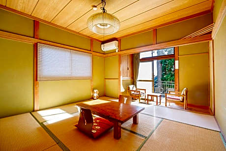 Featuring tatami (woven-straw) flooring and futon bedding, this room comes with a small TV, a personal safe and a heater. An electric kettle and a fridge are also provided. Bathroom and toilet are shared.