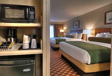 This Pigeon Forge hotel includes 2 separate buildings and is 2 mi from the Wonderworks attraction and 11 mi from Great Smoky Mountains. Guests can enjoy mountain views, and both a 24-hour indoor pool and outdoor pool. A flat-screen cable TV with HBO movie channels, microwave, and small refrigerator are provided in each room of this Pigeon Forge hotel. All accommodations feature contemporary furnishings with granite bathroom vanities. Quality Inn Near the Island Pigeon Forge offers two hot tubs, and a children's pool, Free property-wide Wi-Fi, a 24-hour reception, and an on-site launderette are also offered. Pirates Voyage Dinner & Show and The Island in Pigeon Forge are directly across the street from the property and less than 5 minutes' walk.
