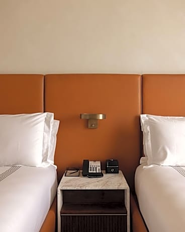 Each guest room at Sixty Beverly Hills is designed with sophistication, featuring dark hardwood floors, rich color palettes, and French step-out balconies to enjoy the bustling city views. Modern comforts are at your fingertips with 55” Flat Screen Smart TVs, Nespresso machines, and marble-clad bathrooms equipped with luxury bath amenities and soft terry bathrobes.