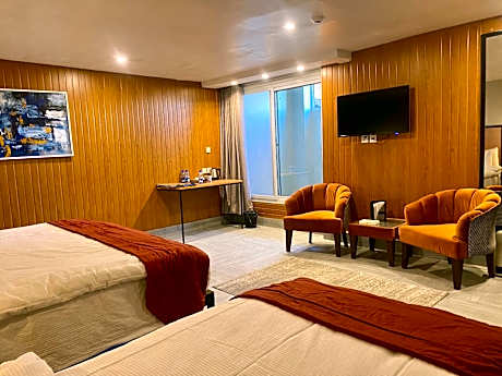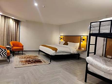 Offering free toiletries, this quadruple room includes a private bathroom with a shower, a hairdryer and slippers. The quadruple room offers a tea and coffee maker, a seating area, a dining area along with a sofa. The unit has 2 beds.