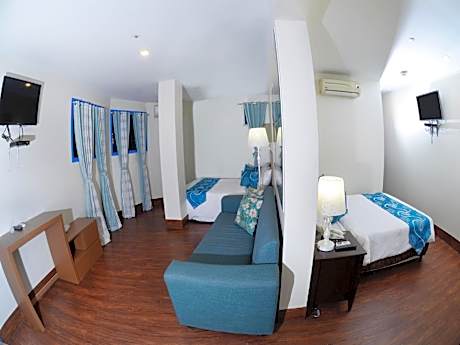 Skyblue Hotel offers top-notch services and amenities, ensuring guests experience utmost comfort. Share your photos and respond to emails at your convenience, thanks to the free Wi-Fi internet access offered by hotel.Should you require transportation to or from the airport, hotel is able to organize it prior to your arrival date.Taxi offerings at the hotel enhance the ease of discovering Cebu.Visitors can take advantage of complimentary parking directly at the hotel. Reception services such as concierge service, express check-in or check-out, luggage storage and safety deposit boxes are available to accommodate your requirements. Securing top-notch tickets and snagging sought-after dining reservations become effortless, thanks to the hotel's ticket service and tours.Room amenities like 24-hour room service, room service and daily housekeeping contribute to making a perfect selection for your stay.The hotel maintains a completely smoke-free zone, providing a breathable atmosphere.Smoking is limited to specified smoking zones. Each accommodation at Skyblue Hotel is thoughtfully created and adorned to provide visitors with a comfortable, home-like atmosphere.In select rooms of the hotel, guests can enjoy the advantage of having air conditioning available for their convenience. In select rooms, guests at the hotel can enjoy top-notch in-room entertainment with television and cable TV available for their convenience.Rest assured, in a few chosen rooms, the presence of a refrigerator can be found.Understanding the significance of bathroom amenities in enhancing guest contentment, the hotel offers toiletries within certain chosen rooms. Experience the delight of a fresh morning by savoring excellent coffee at the cafe situated within hotel.Should you prefer not to venture out for a meal, the enticing culinary choices at hotel are always available for your satisfaction. Skyblue Hotel provides a superb assortment of leisure amenities for guests to enjoy. Unwind after a long day by stopping by massage, spa and sauna to rejuvenate your senses.