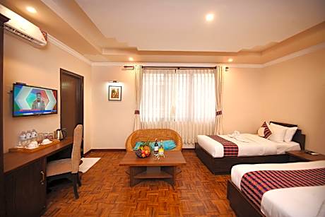 Great care is taken to ensure guests experience comfort through top-notch services and amenities.Remain linked during your visit by utilizing the complimentary internet access available.Prior to your check-in date, you can arrange airport transportation services, guaranteeing a seamless and efficient experience for both arrival and departure. Services offered by taxi, car hire and shuttle at the hotel ensure effortless exploration of Kathmandu. Parking is accessible, supplied by the hotel for guests who arrive by car.Effortlessly plan your daily activities and travel requirements with concierge service, express check-in or check-out, luggage storage and safety deposit boxes provided by the front desk services.Securing passes to the city's top attractions is simple with the hotel's ticket service and tours.During your stay at this fantastic hotel, experience comfort and warmth from the delightful on-site fireplace on those chilly days and nights. Repeatedly enjoy your best-loved attire with the aid of the laundry service available at Skye Inn Kathmandu. During leisurely days and evenings, in-room amenities such as 24-hour room service, room service and daily housekeeping enable you to maximize your stay in the room. For minor or impromptu requirements, the convenience stores can promptly cater to them without the necessity of stepping out from the hotel.In limited designated zones, smoking is exclusively permitted.Crafted for coziness, every guestroom provides an array of features, guaranteeing a tranquil night's sleep while maintaining the level of comfort. For an elevated experience at hotel, select rooms are equipped with air conditioning to improve your stay. In select rooms, the hotel offers visitors access to a refrigerator. Begin your day on a delightful note with a scrumptious complimentary breakfast, consistently served at Skye Inn Kathmandu. Begin your holiday mornings right with your essential cup of coffee, offered daily at the cafe on-site.During your visit, indulge in a range of delightful culinary choices at hotel to enhance your experience.Concerned about your dining preferences? Fret not! Skye Inn Kathmandu offers an array of culinary choices, featuring kosher and halal alternatives. Experience a fantastic evening effortlessly! Relish an entertaining night without venturing beyond the confines of the bar. Snack vending machines operate around the clock, providing you with easy access to treats regardless of the hour.Do you possess exceptional culinary skills? Prepare your meals personally within the hotel at its shared kitchen.