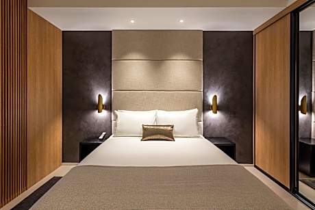 Located in the heart of Sydney CBD (Central Business District), on Kent Street, SKYE Suites Sydney offers 73, designer boutique suites. Guests have access to an indoor pool, a hot tub and a fitness center. Unlimited free WiFi is available. The apartment complex is 5 minutes’ walk from Barangaroo and the Queen Victoria Building. Darling Harbor, Pitt Street Mall and Westfield Shopping Center are all within 10 minutes' walk. Kingsford Smith Airport is 5 mi from the property. Each of the large, open plan suites offer plush bespoke bedding, a full kitchen/kitchenette and an internal laundry. Included in all rooms are Kevin Murphy bathroom amenities.