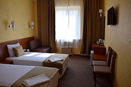 This 3-star hotel is located in the heart of Sofia, overlooking the Vitosha Mountain, and 2297 feet from the Serdika Subway Station. Theaters, cinemas, exhibitions halls, banks and federal institutions are within a 656 feet.. The hotel has five floors, all accessible by elevator, and offers 88 comfortable rooms and 4 apartments for all kinds of travelers, from business and leisure guests to tour groups. Hotel Slavyanska Beseda features a Bistro, a Chinese restaurant, a cafe, a conference hall, and an on-site beauty center. The Sofia International Airport is 3.7 mi away, and airport transfer is available upon request via a taxi, at a surcharge.