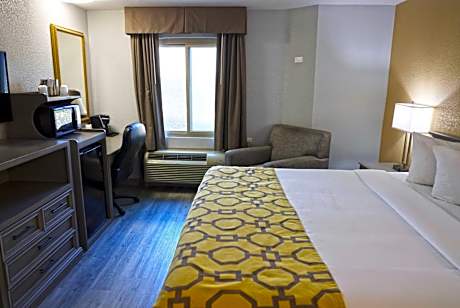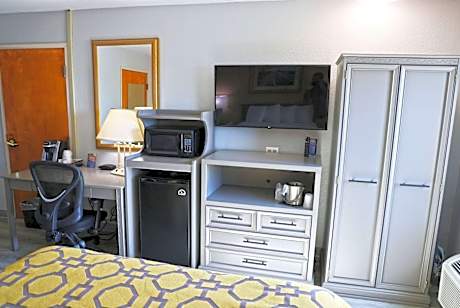 Located 2.1 miles from Route 66 Mother Road Museum, Baymont by Wyndham Barstow Historic Route 66 offers 2-star accommodations in Barstow and features a seasonal outdoor swimming pool, a fitness center and a shared lounge. Free WiFi is available. Guest rooms are equipped with air conditioning, a flat-screen TV with satellite channels, a fridge, a coffee machine, a shower, free toiletries and a desk. Guest rooms include a private bathroom, a hairdryer and bed linen. A business center and vending machines with snacks and drinks are available on site at the hotel. Staff speak English and Spanish at the reception. LA/Ontario International Airport is 73 miles away.