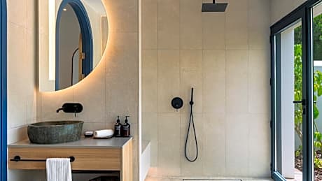 This double room features a hot tub. The spacious double room features soundproof walls, a mini-bar, a terrace with garden views as well as a private bathroom boasting a bath. The unit has 1 bed.