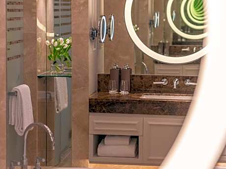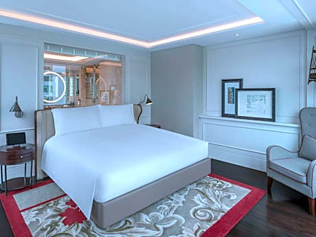A spacious & lively 138 ft² room offers one king bed and a bunk bed for 2 children, an in-room smart tablet, 55" LED TV, universal sockets, premium WIFI and Sofitel MyBed™. The marble bathroom features a shower, bathtub and Balmain amenities.