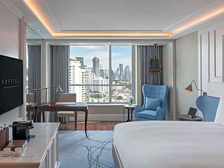 Sofitel Bangkok Sukhumvit Hotel offers top-notch services and amenities, ensuring guests experience utmost comfort. Share your photos and respond to emails at your convenience, thanks to the free Wi-Fi internet access offered by hotel. Should you require transportation to or from the airport, hotel is able to organize it prior to your arrival date.Taxi and car hire offerings at the hotel simplify arranging your excursions, explorations, and additional activities in Bangkok. Visitors can take advantage of complimentary parking directly at the hotel. Reception services such as concierge service, express check-in or check-out, luggage storage and safety deposit boxes are available to accommodate your requirements. Securing top-notch tickets and snagging sought-after dining reservations become effortless, thanks to the hotel's ticket service and tours.Relax and feel the warmth in the hotel's inviting lobby, featuring an enchanting on-site fireplace.Traveling with minimal baggage is achievable at Sofitel Bangkok Sukhumvit Hotel, as the hotel's dry cleaning service and laundry service ensures your garments stay fresh. Room amenities like 24-hour room service, room service and daily housekeeping contribute to making a perfect selection for your stay.Minor items you neglected to bring won't cause major issues! Simply visit convenience stores to acquire what's necessary. Smoking is limited to specified smoking zones. Each accommodation at Sofitel Bangkok Sukhumvit Hotel is thoughtfully created and adorned to provide visitors with a comfortable, home-like atmosphere. In certain rooms, the hotel offers linen service and air conditioning for guest convenience and satisfaction.At Sofitel Bangkok Sukhumvit Hotel, the uniquely tailored rooms provide a configuration choice resembling a balcony or terrace. In select rooms, guests at the hotel can enjoy top-notch in-room entertainment with daily newspaper, television, in-room video streaming and cable TV available for their convenience. Rest assured, in a few chosen rooms, you will find the convenience of a refrigerator, a coffee or tea maker, bottled water, instant coffee, instant tea and mini bar at your disposal.Sofitel Bangkok Sukhumvit Hotel offers a hair dryer, toiletries and bathrobes in the restrooms of specific accommodations. Immerse yourself in the executive lounge, where exceptional amenities and lavish surroundings await you. Embark on your holiday experience in the most ideal manner. Commence each morning of your visit with an on-site breakfast.Experience the delight of a fresh morning by savoring excellent coffee at the cafe situated within hotel.Should you prefer not to venture out for a meal, the enticing culinary choices at hotel are always available for your satisfaction. Experience an unforgettable evening with your fellow travelers just a short distance away, at hotel's bar. For those who prefer savoring meals within their personal space, Sofitel Bangkok Sukhumvit Hotel offers the convenience of doorstep grocery delivery, allowing you to prepare and enjoy food in your room.Should you be particularly discerning in your dining choices, you will surely appreciate having access to the on-site BBQ facilities provided at this location.Sofitel Bangkok Sukhumvit Hotel provides a superb assortment of leisure amenities for guests to enjoy. Unwind after a long day by stopping by massage, hot tub, salon, solarium, steam room, spa and sauna to rejuvenate your senses.Each day at hotel, immerse yourself in the invigorating waters of the pool, perfect for a rejuvenating plunge or a series of revitalizing laps.Bypass the formal attire and choose a laid-back mixed drink or brew at hotel's waterside lounge. For individuals who don't want to skip their exercise routine, visiting the hotel fitness center ensures you maintain your vitality and wellness.