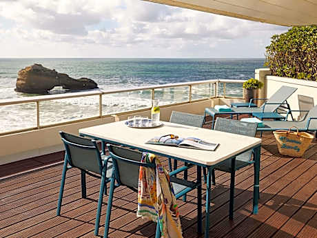Just a few steps from downtown Biarritz, the Sofitel Biarritz le Miramar overlooks one of the most beautiful beaches of the Basque Coast. As each season has its own sweetness, all 126 rooms and suites have a terrace with a view of the ocean or the architecture of Biarritz. For infinite serenity, you have direct access to the Thalasso. Our Chef Robert Job maintains the reputation of a precursory restoration. He draws his inspiration from local products from the fishing and the terroir to create an imaginative and equilibrated cuisine. Restaurant, Bar, Terrace or Room-Service, at each hour of the day its light, its atmosphere and its gourmandize. A unique experience is waiting for you in our intimate treatment pavilions with subdued lighting. Relax your body and mind with our collection of personalized treatments : facials, sculpting, beauty, health and well-being at 360°. To breathe : panoramic outdoor seawater pool, indoor seawater pool. To move: high-tech fitness room facing the ocean, private coaching, aqua gym, Pilates.