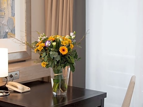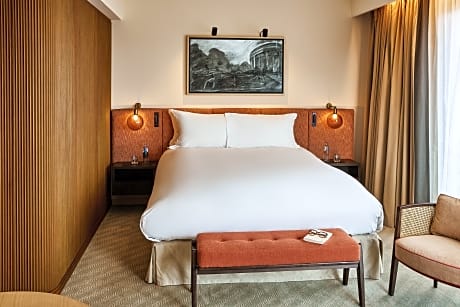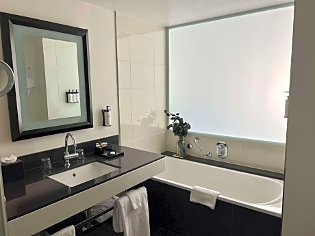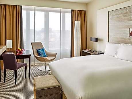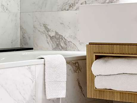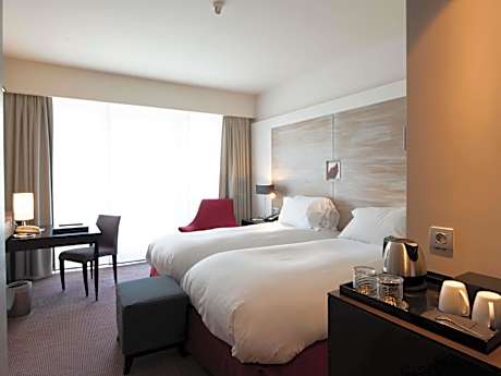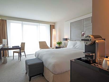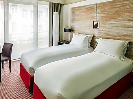 Sofitel Brussels Europe is centrally located on the lively Place Jourdan, walking distance from the major EU institutions and four stops away by metro from the historical city center and the Grand Place. It offers a wonderful rooftop overlooking the Place Jourdan Sofitel Brussels offers you 147 guest rooms with stylish and bright interiors and renovated suites. The rooms are featuring LCD TV’s screens, free Wi-Fi, tea-and-coffee-making facilities as well as a work desk and air-conditioning. The luxurious private bathrooms featuring a rain shower, bathrobe, slippers and Balmain toiletries. Relax at the Hamman or schedule an appointment for an amazing massage. Our fitness studio offers the latest technogym equipment. The Concierge service is available for any suggestions, which will make your stay memorable. Valet parking available. With local and seasonal produce, the chef at the 1040 restaurant reinvents Belgian specialties. The chic and casual bar serves tasteful cocktails, as well as a huge variety of Belgian artisanal beers. In-room dining is available 24 hours. Schuman metro station is just 1640 feet away, offering easy access to the rest of Brussels.