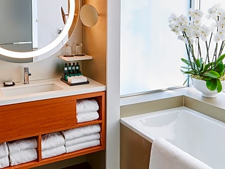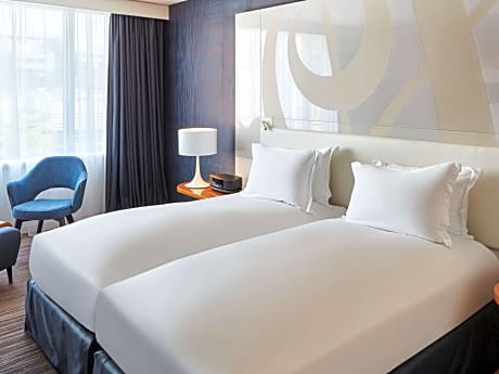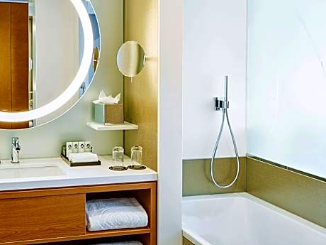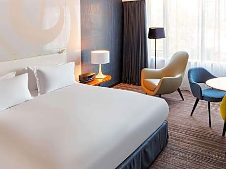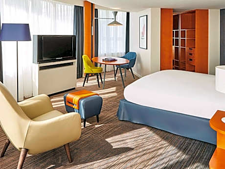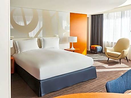 The Sofitel Luxembourg Europe is a modern 5-star hotel offering elegant rooms and suites, and boasting 2 fine dining restaurants and a fitness center. Guests benefit from free WiFi during their stay. The spacious hotel rooms at Sofitel Luxembourg are luxuriously decorated and have modern features such as flat-screen satellite TVs. There is a seating area for guests to relax, a tea/coffee maker is provided. A full breakfast buffet is offered every morning. In the evening, The De Feierwon (Grill restaurant) offers a menu of traditional cuisine of Luxembourg. There is also the Radici ("trattoria") the hotel's Italian restaurant. The bar SixtyFour offers a large selection of whiskeys and teas. The hotel is located 1.2 mi from the city center and overlooks the new Philharmonie and the Plateau de Kirchberg. There is a free tram stop within a 2 minutes walking distance.