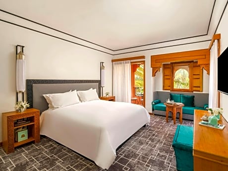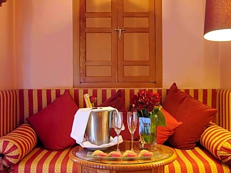 Sofitel Marrakech Le Palais resembles a Moorish palace and is surrounded by gardens with exotic plants and flowers. It offers an outdoor swimming pool and is located a 15-minute walk from Jamaâ El Fna Square. Its traditional architecture along with its ochery-colored walls gives it an irresistible charm that can also be found in every room. Each room is equipped with comfortable bedding, air-conditioning and a bathroom with L'Occitane products. Unwind in the hotel's lush gardens or in its palm-fringed swimming pools. Guests can also relax in the hammam and sauna or exercise in the modern fitness room. The Sofitel's restaurants and bars provide the perfect setting for relaxing and socializing and offer refined French cuisine with the latest in fusion dishes from around the world. Guarantee policy: Prepayment of the entire stay by credit card debited at the time of booking. The credit card used for payment must be presented to reception upon arrival at the hotel