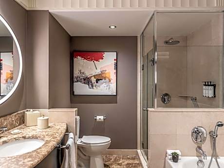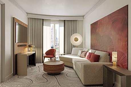 This midtown Manhattan hotel is within a 7-minute walk from Times Square and several subway stations. Sofitel features a gym and guest rooms with flat-screen cable TVs and mini-bars. Each room offers a desk and safety deposit box. They also have seating areas. The bathrooms include separate showers and baths along with hairdryers. For guests’ convenience, the hotel provides room service, currency exchange and a 24-hour front desk. Broadway Theaters, Rockefeller Center and Radio City Music Hall are within an 8-minute walk from New York Sofitel. The Empire State Building is 15 minutes away while Central Park is a 20-minute walk from the hotel. Note : Some of hotel guest rooms are under renovation until Sept 17th, 2025. Lobby, Gym and restaurant are under renovation until early September. Please contact the hotel for the latest updates.