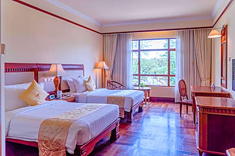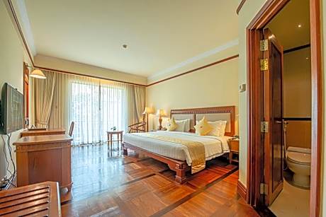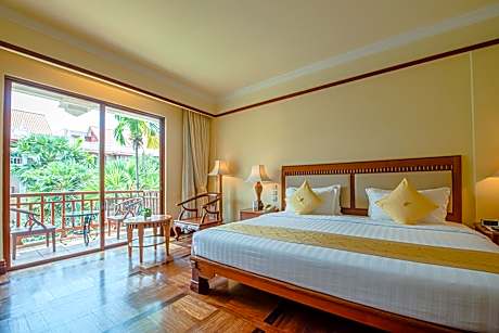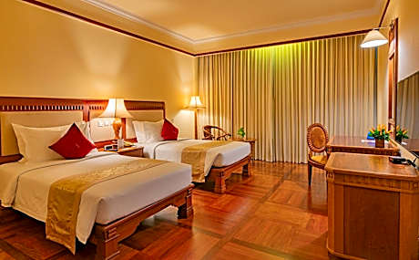 Sokha Angkor Resort provides flawless service and all the necessary facilities for visitors. Stay connected with your associates, as complimentary Wi-Fi is available during your entire visit. To facilitate your arrival and departure, you can pre-book airport transfer services prior to checking in.The resort offers taxi, car hire and shuttle amenities for your ease in navigating around Siem Reap.When arriving by car, you'll be grateful for the on-site complimentary parking at resort. The resort offers reception amenities including concierge service, express check-in or check-out, luggage storage and safety deposit boxes to ensure a comfortable stay for guests.Should you require assistance, the ticket service and tours can also aid in booking tickets and securing reservations at the finest shows and events in the vicinity.Whether it's an extended stay or simply needing fresh attire, laundromat, dry cleaning service and laundry service provided by resort ensures your cherished travel garments stay spotless and accessible.Your stay will be comfortable with the presence of room service and daily housekeeping as an in-room amenity for your relaxation and enjoyment.Smoking is permitted solely in the specified smoking zones allocated by resort.In order to ensure the utmost level of relaxation, the guestrooms feature an inviting design and are equipped with all basic necessities, creating a delightful stay experience. To ensure a pleasant stay, a selection of rooms at resort come furnished with linen service, blackout curtains and air conditioning, all designed with your ease in mind.At Sokha Angkor Resort, various room configurations are available, featuring separate living room and balcony or terrace in some rooms. In select rooms, visitors can enjoy a touch of amusement with the availability of daily newspaper, television, in-room video streaming and cable TV for their entertainment needs.Within specific rooms, a refrigerator, a coffee or tea maker, bottled water, instant coffee, instant tea and mini bar is conveniently available for your use.Understanding the significance of bathroom facilities in enhancing visitor contentment, resort offers a hair dryer, toiletries and bathrobes within a few chosen chambers. Start your day stress-free at Sokha Angkor Resort as breakfast is made available for you on the premises. Various excellent meal offerings at resort ensure that enticing and easily accessible options are constantly available.Visitors wishing to create their personal culinary delights will appreciate the on-site BBQ facilities provided at this establishment. Throughout the day, engage in the entertaining activities available at Sokha Angkor Resort. Unwind and conclude each day delightfully by stopping by massage and hot tub, ensuring a soothing experience.Unwind by the pool at resort and cherish a leisurely moment. Enjoy a refreshing beverage al fresco at resort's poolside bar savoring your preferred concoction.Guests who enjoy maintaining their fitness regimen while on holiday can visit the fitness center provided by resort. License Number(s): L001-100045863