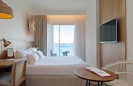 This quiet, air-conditioned room type was renovated in 2015 and is decorated in a modern, fresh Mediterranean style. Many of the rooms have side views of the sea or the pool. Each comes with satellite TV, telephone, safe and mini-bar. The private bathroom comes with a shower and hairdryer. The room was renewed in 2024.