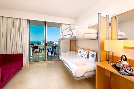 This air-conditioned quadruple room is consisted of of a flat-screen TV with satellite channels, a private bathroom as well as a balcony with city views. The unit has 4 beds.