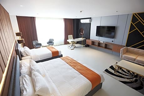 This spacious suite is consisted of of 1 living room, 1 separate bedroom and 1 bathroom with a shower and free toiletries. The suite's kitchenette, which features a refrigerator and a microwave, is available for cooking and storing food. The air-conditioned suite offers a flat-screen TV with cable channels, a mini-bar, a tea and coffee maker, a dining area as well as city views. The unit offers 1 bed.