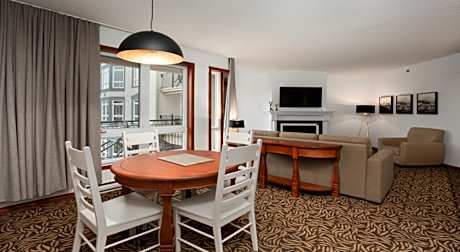 Located in Mont Tremblant’s pedestrian village, this hotel offers ski-in/ski-out access, as well as direct access to the snow school and hiking trails. An outdoor saltwater whirlpool and swimming pool are available on site. An HD flat-screen TV, a fully-equipped kitchen and Wi-Fi access are provided in each unit at Sommet des Neiges. Sommet des Neiges Hotel also offers a fitness room, sauna and games room complete with billiards. Mont Tremblant National Park is just 10 minutes' drive from this hotel and Mont Tremblant Casino is 1.2 mi away. Le Diable and Le Géant golf courses are less than 0.6 mi away.