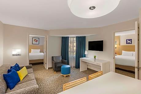 Sonesta ES Suites Charlotte is centrally located in the Arrowood Business District, close to many major corporations and within 8.7 mi of the Charlotte Convention Center. A buffet breakfast is provided. Breakfast items include a muffin or Danish, granola bar, whole piece of fruit and a bottle of water. A coffee station is also available in the morning. All suites feature fully equipped kitchens, a work area, living room, HDTV with expanded cable and complimentary WiFi. The hotel offers on-site Shoppe convenience store, lobby smoothie and coffee bar, laundry facilities, 24-hour exercise facility, complimentary access to an off site full service gym, outdoor seasonal pool, sports court and gas grills in the yard. The hotel is less than 15 minutes’ drive from Charlotte city center and Bank of America Stadium, home of the Carolina Panthers. Charlotte Douglas International Airport is 8.9 mi away.