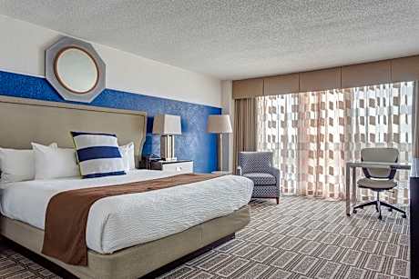 This luxury resort overlooks Clear Lake and offers a full-service spa and fitness center. The property is 5 miles from the Space Center Houston Visitors Center. Spacious rooms include floor-to-ceiling windows with views of Clear Lake at the South Shore Harbour Resort and Conference Center. The rooms also have cable TV and free Wi-Fi. Guests can work out on the tennis court or relax with a massage during their stay. Dining at the South Shore Harbour includes a seasonal swim-up bar at the outdoor pool. The resort also has a restaurant and lounge with views of Clear Lake. The resort is a 35 minute drive from Galveston, which features dining and entertainment. Downtown League City is 3 miles from the property.