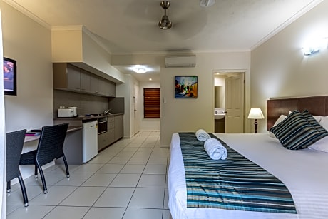 Conveniently located in central Cairns, Southern Cross Atrium Apartments offer access to 3 tropically landscaped pools and a fitness center with a sauna. There is also an on-site cafe, open for breakfast only and a tour desk. All accommodations includes cooking facilities. Unlimited free WiFi is included. Southern Cross Atrium Apartments are just 10 minutes’ walk from the restaurants and bars on the Cairns Esplanade. The railway station and Cairns Central Shopping Complex are only 328 feet away. Cairns Convention Center is only a 15-minute walk away.